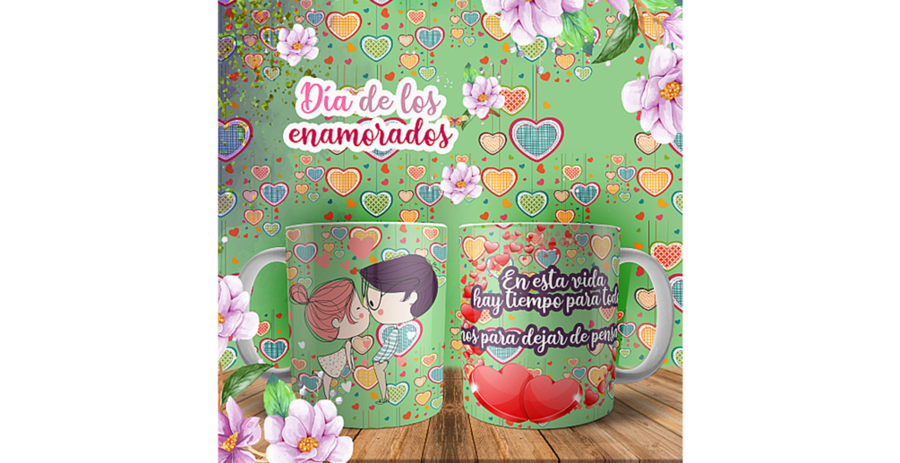 Dos bonitas plantillas del día de los enamorados, tanto en PSD totalmente editable como en PNG . Dale encanto a tus tazas personalizadas